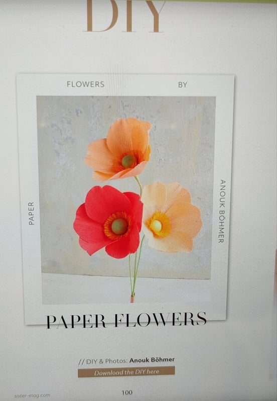 Voor Sister Mag mocht ik een exclusieve diy schrijven. Voor de diy ben ik uitgegaan van doublette papier, omdat dit een duitse fabrikant is en dit gemakkelijker voor de lezers zou zijn om te kopen. De diy vind je via deze link: https://www.sister-mag.com/en/downloads-multimedia/diy-freebies/diy-paper-flowers-by-anouk-boehmer/