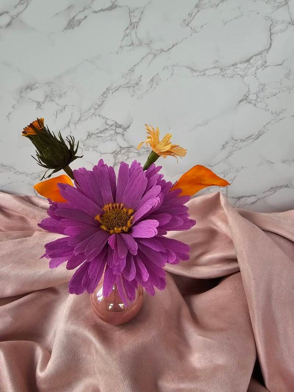 Een mooi, klein bombastisch geheel dat is dit heerlijke boeketje. Dit fleurt je bureau of woonkamer zeker op! Inclusief vaasje!