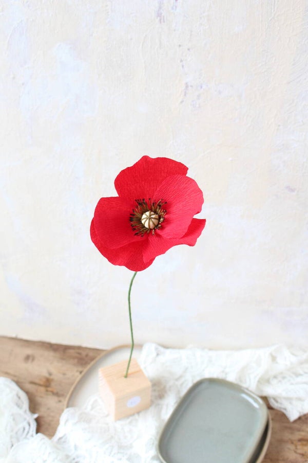 Je ontvangt de bloem van de eerste twee afbeeldingen inclusief het houten houdertje. De laatste afbeelding is een sfeer impressie van meerdere bloemen bij elkaar.