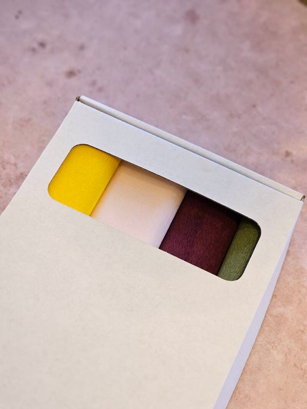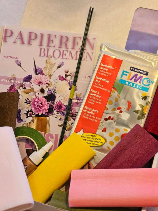 Dit pakket bevat alle benodigdheden om aan de start te gaan met het maken van papieren bloemen.