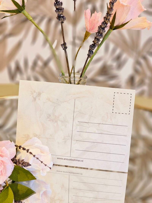 Super mooie ansichtkaarten met prints van mijn papieren bloemen. Een leuke set van 5 kaarten en geprint op mooi papier. Een leuk kado om te geven en te krijgen!