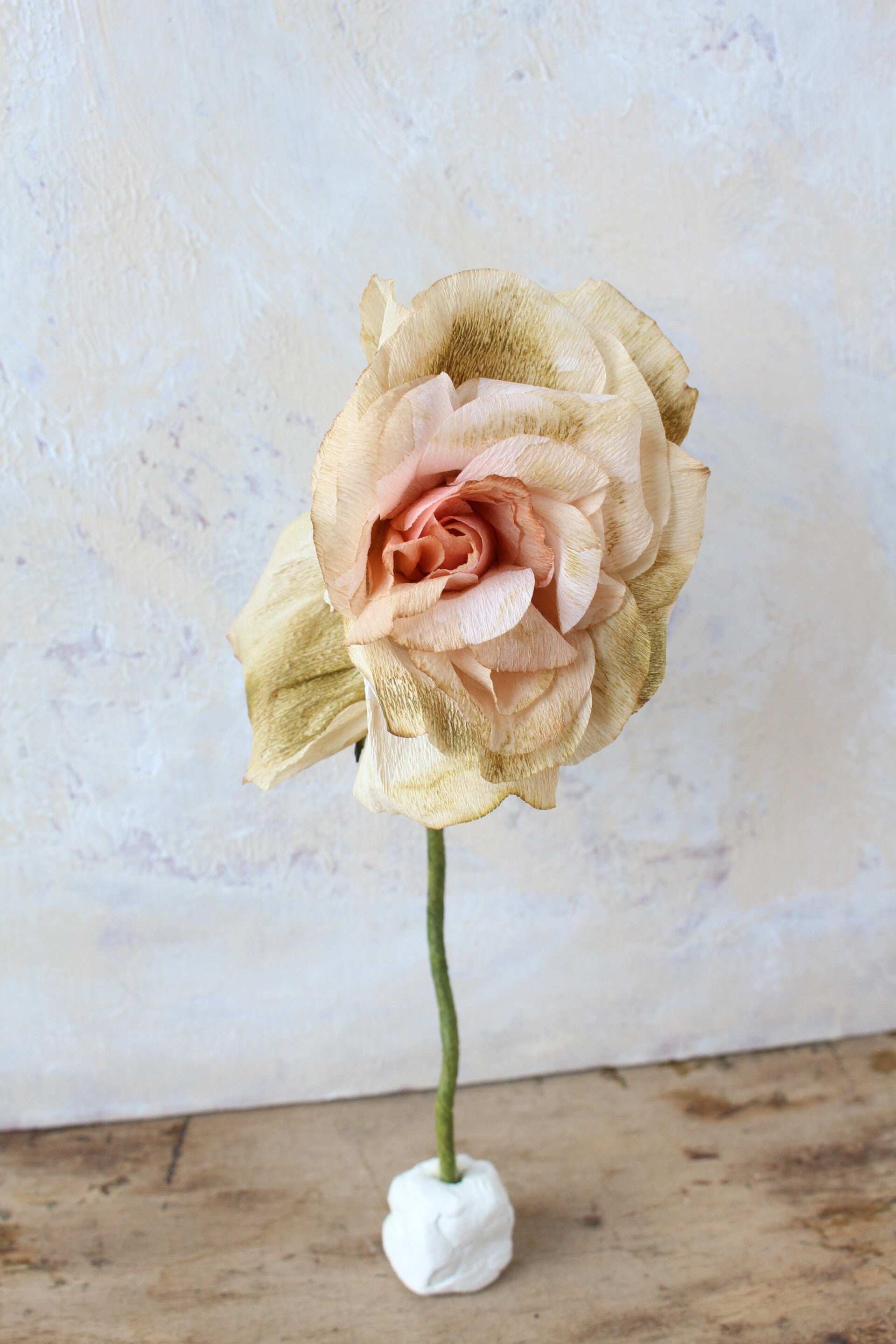 Deze bloemen komen allemaal inclusief afgebeelde houder, de maten variëren. Elke bloem is door het vervaardigingsproces zo uniek dat er geen tweede hetzelfde gemaakt kan worden. Een unieke sculptuur van een vervallen bloem.