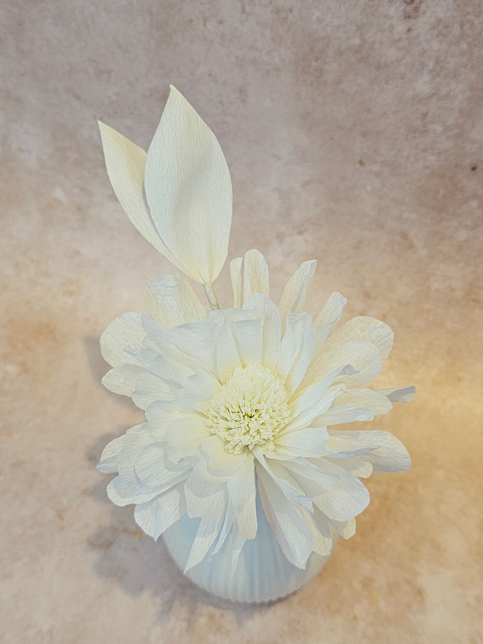 Uit de monochroom serie, een prachtige, kleine aster met bladin een klein, keramieken vaasje. Alles prachtig uit een kleur. Precies zodat dit bij iedereen in het interieur past! Heel leuk om meerdere boeketjes te combineren!
