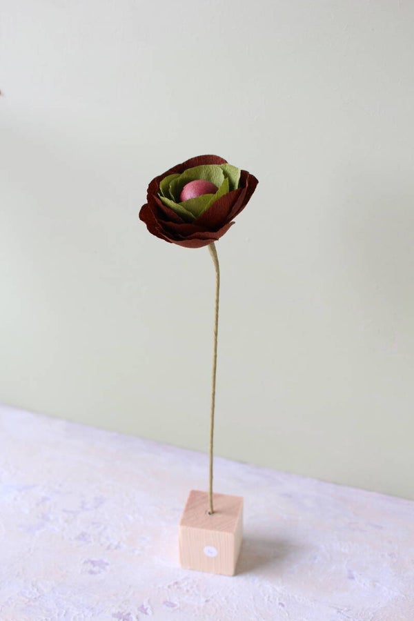 Je ontvangt de bloem inclusief afgebeelde houten blokje. Het blokje kan imperfecties bevatten, want komt voort uit hergebruik.