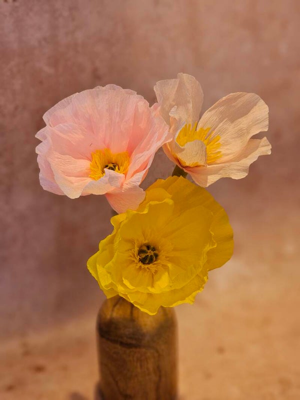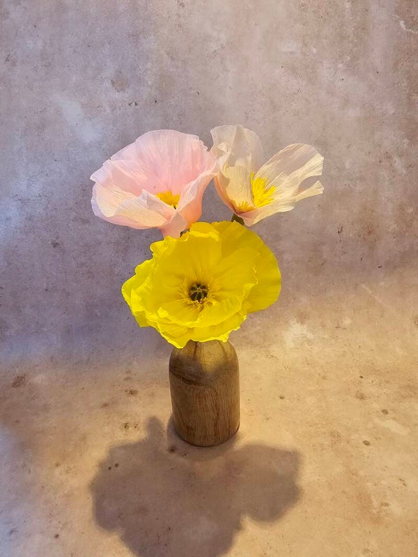 Drie mooie poppies, geïnspireerd op de ijsland klaproos. Een fleurig geheel, inclusief vaasje!