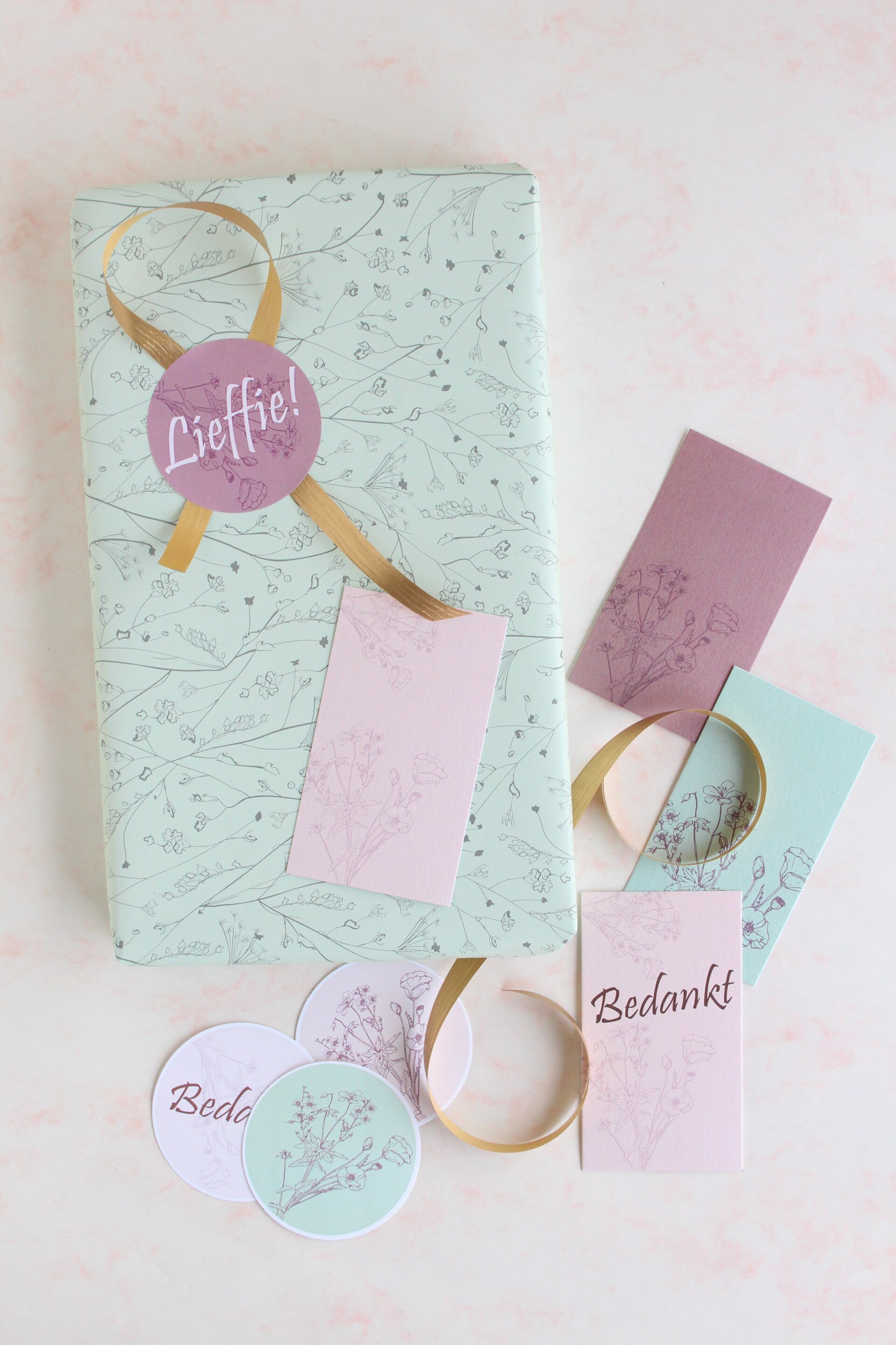 Dit te gave setje bestaat uit een mooie mix van roze en groentinten. Her en der een toffe tekst en de rest lekker neutraal. Je maakt zo van elk pakket een feestje!