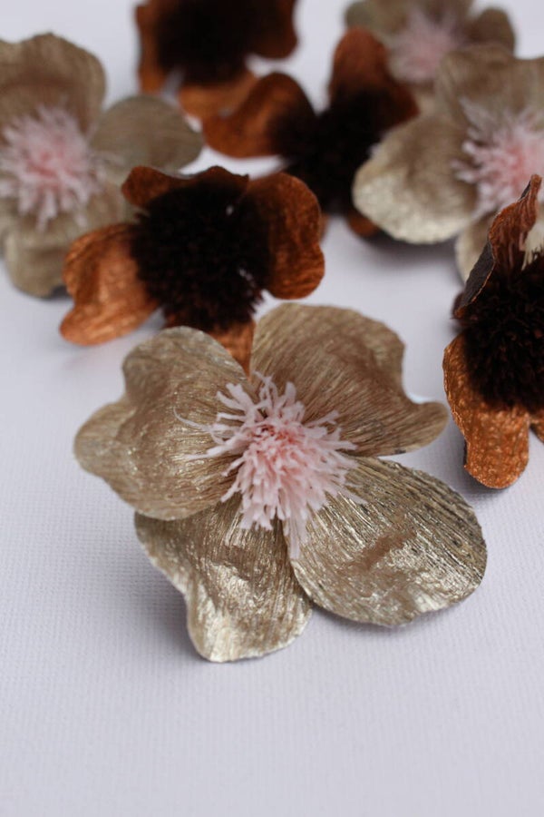 Witgoud en koperen bloemen, deze geven net altijd het glimmertje wat je nodig hebt in een foto.